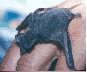This is a live baby Bat clinging to a human's hand. Bats are the only actual flying mammals. |